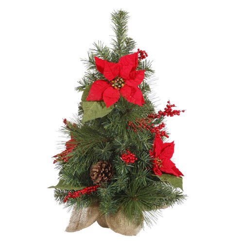 specification of 2' Poinsettia and Pine Cone Artificial Christmas Tree in Burlap Base - Unlit