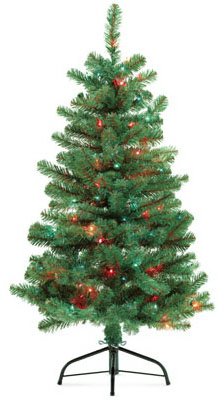 4' Piedmont Fir Artificial Tree With 100 Multi Lights 28" Diameter 230 Mixed Tips Folding Metal Stand.